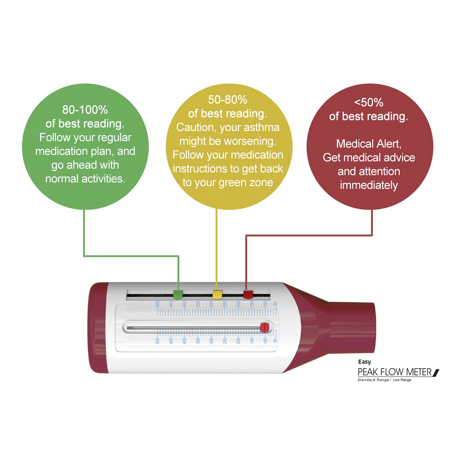 A Peak Flow Meter measures air flowing out of the lungs and can reveal narrowing of airways well in advance of an asthma attack.